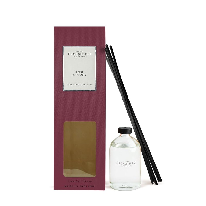 - Luxurious Diffuser Set: Pecksniffs Classic 200ml Diffuser Set in Rose & Peony; a timeless blend of elegance and fresh sophistication perfect for any setting.