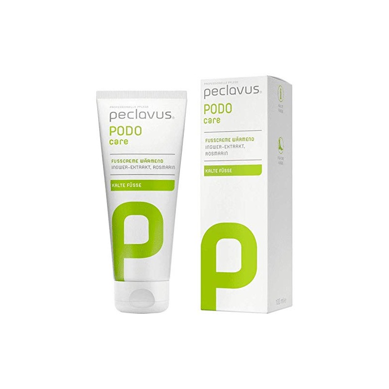 The peclavus PODOcare foot cream warms up and warms naturally. With vitalising ginger extract and blood circulation promoting rosemary oil. High-quality oils such as avocado oil intensively nourish the skin. Ideal for cold season with cold or poorly blood circulated feet. Suitable for all skin types, no use in case of sensitivity disorders (e.g. Diabetes with polyneuropathy). Directions for use: apply to the clean, non-greasy skin in sufficient amount and massage in until no cream is visible. The warming effect has an individual effect on every user. Avoid contact with eyes and mucous membranes. Only use on uninjured skin.