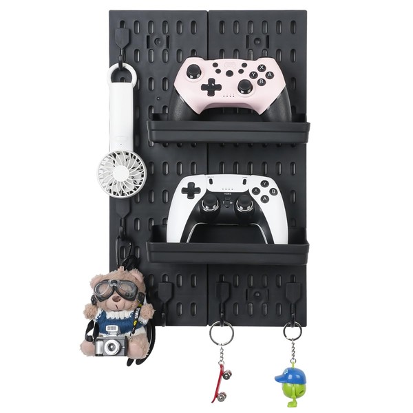 Pegboard Wall Organizer - Modular System for Gaming Setup, Office & Kitchen Storage Solutions Create A Perfectly Structured Space(Black,16″×12″)