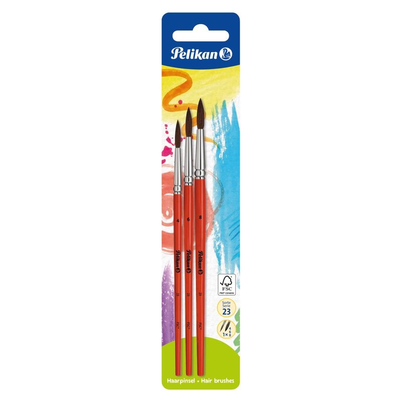 Pelikan 700382 Hair Brush Type 23 Size 4, 6 and 8 (Pack of 3)