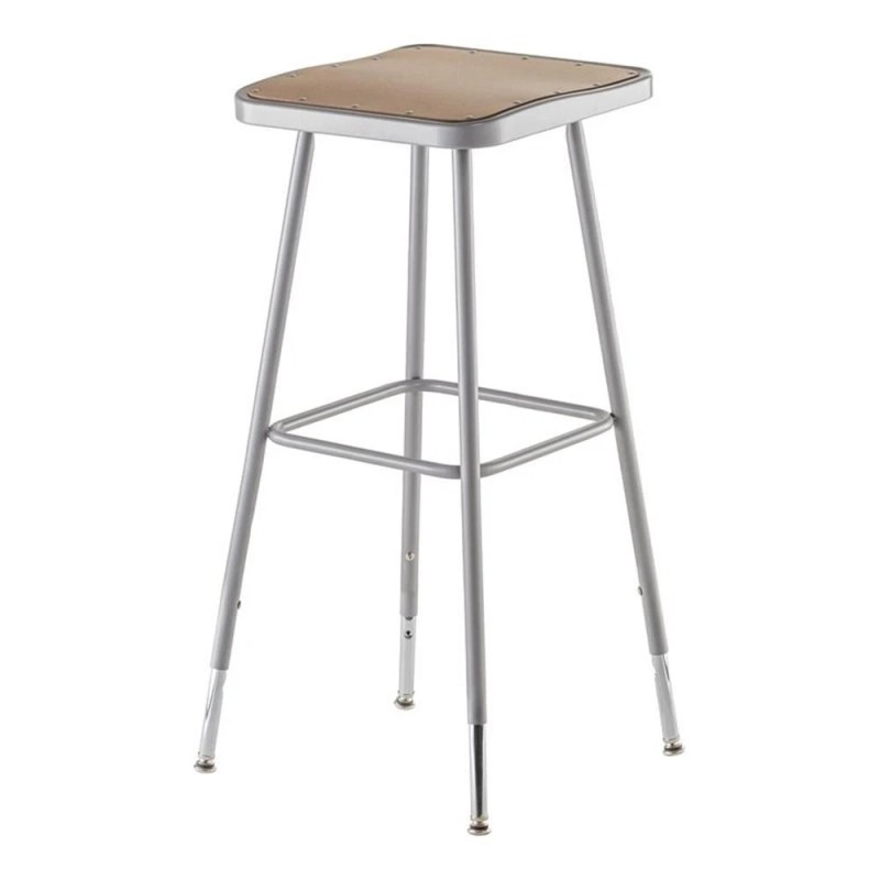 The durable construction and classic design of the heavy-duty square-seat stools are ideal for hands-on educational settings like art rooms, science labs, home economics or shop classrooms. Height-adjustable legs extend from 32" to 39" in 1-inch increments. These reliable stools feature a strong frame of 18-gauge steel tubing securely welded to the seat pan which is riveted in sixteen places to wide Masonite seats that will not warp, chip or crack as they provide years of dependable use. Footrests are securely bonded to each leg with four spotwell contact points.