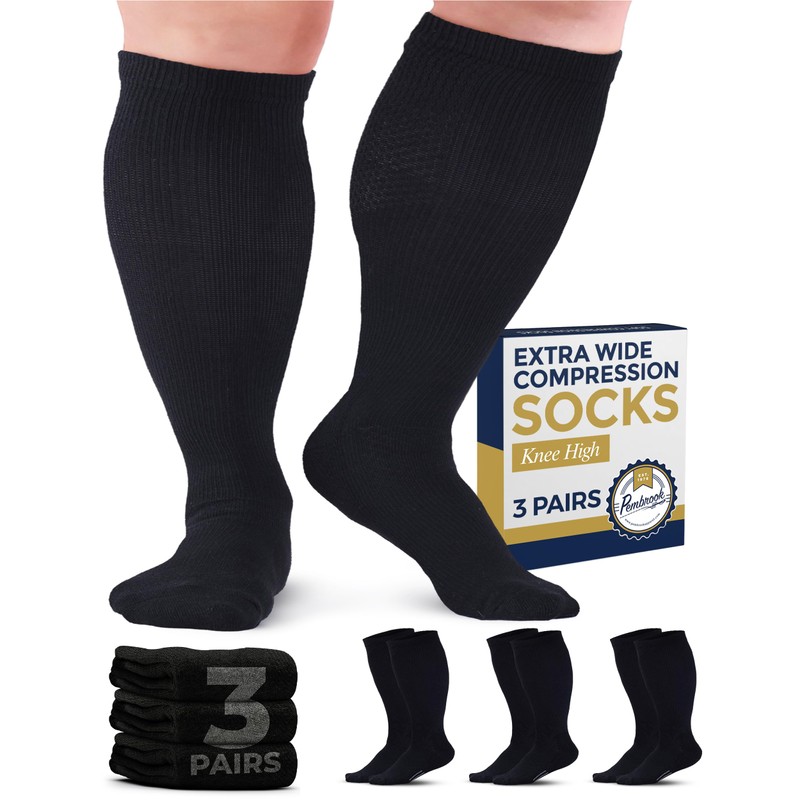 Pembrook Compression Socks for Men - 3 Pack | Graduated Compression Socks Men | Travel, Athletic, Work Socks | Mens Compression Socks | Support Socks for Men | Black Compression Socks for Men