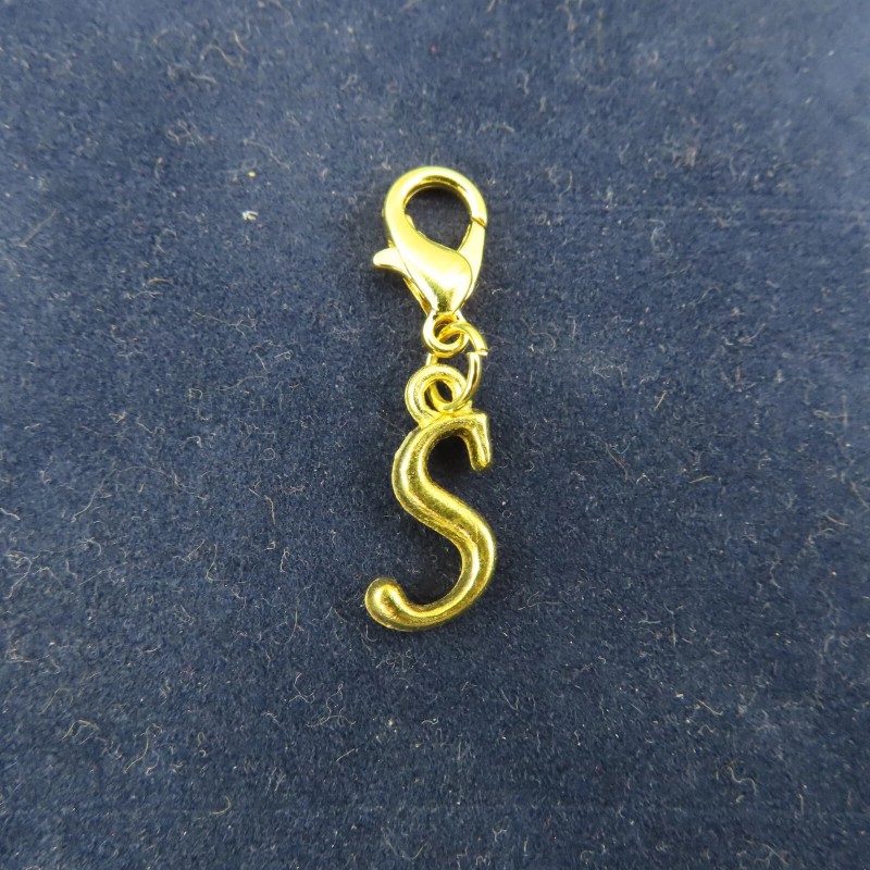 Pemby Studio Initial CURSIVE LETTER S Charm Zipper Pull Keychain Add On Clip Gold Tone Medium