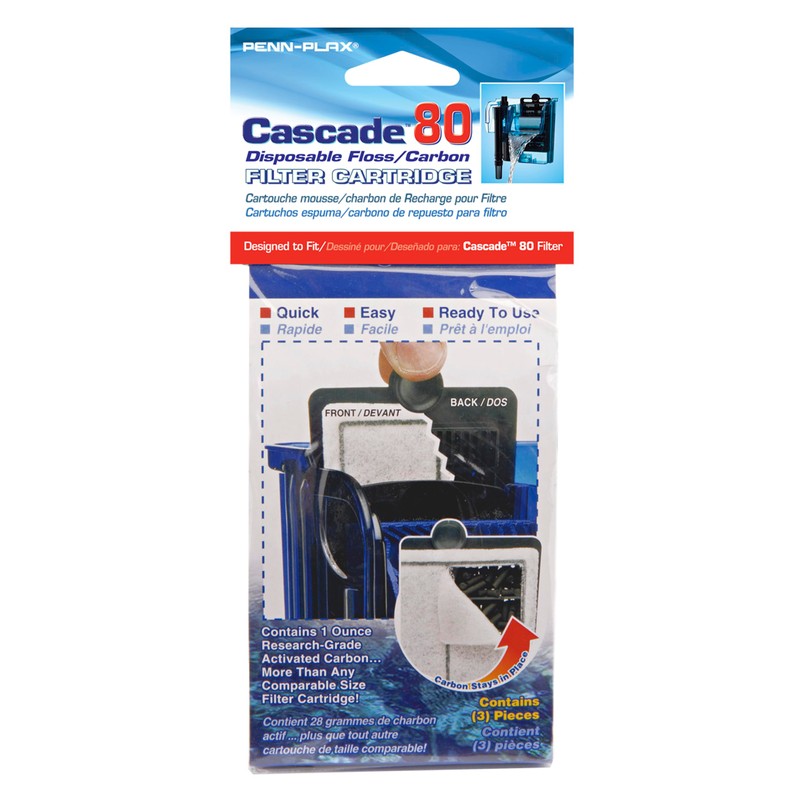 - CASCADE 80 REPLACEMENT CARTRIDGES: This 3-Pack of Cascade Poly Fiber Floss and Activated Carbon Media Cartridge is specially designed for Cascade 80 Power Hang-On Filters, allowing for simple and easy media replenishment. Safe for freshwater and saltwater aquariums.