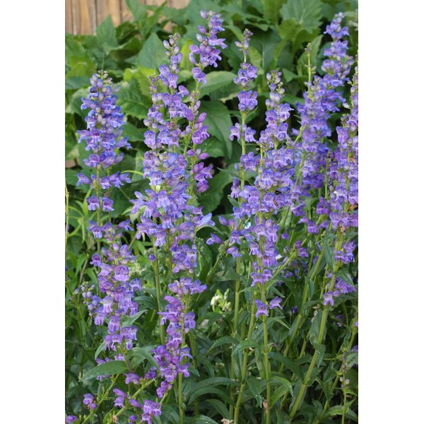 - 1-3 foot evergreen perennial with multiple spires of large, royal blue to purple flowers rising about low mats of foliage