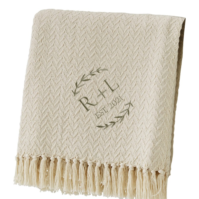 Personalization Universe Their Initials Wedding Embroidered Afghan