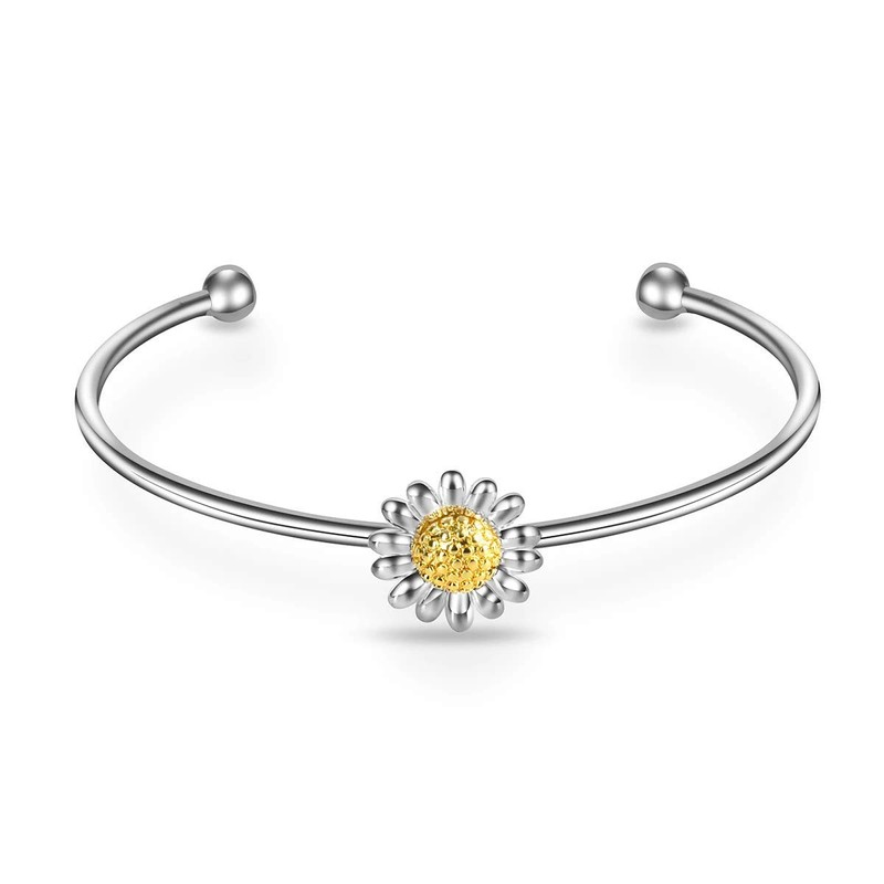 Elevate your style with the Daisy Cuff Bangle from Philip Jones. Made with high-quality silver and gold plating, this bangle boasts a sleek polished finish and hypoallergenic materials. The striking daisy design and lightweight 7.4g weight make it a must-have accessory. Comes in a beautiful gift pouch for easy gifting.