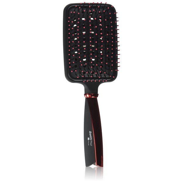 - Slotted holes in back of brush let air in and the round holes in cushion allows even distribution of air around hair
