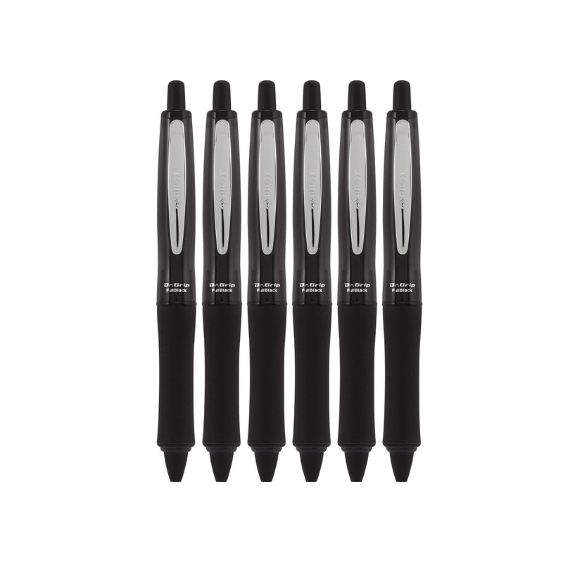 PILOT Dr. Grip FullBlack Refillable & Retractable Ballpoint Pen, Medium Point, Black Ink, 6 PACK