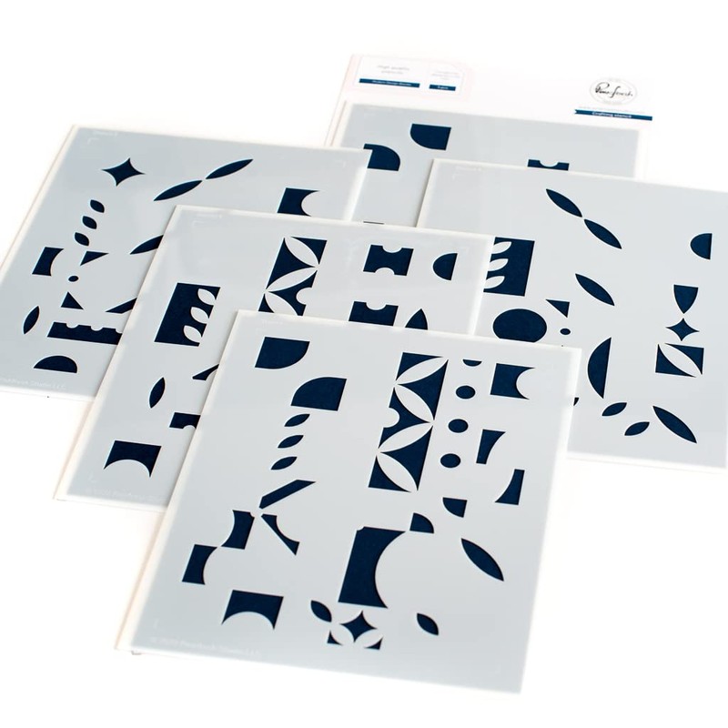 PINKFRESH STUDIO Modern Design Blocks Layering Stencils 4.25"X5.25" 5/Pkg