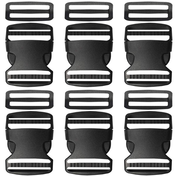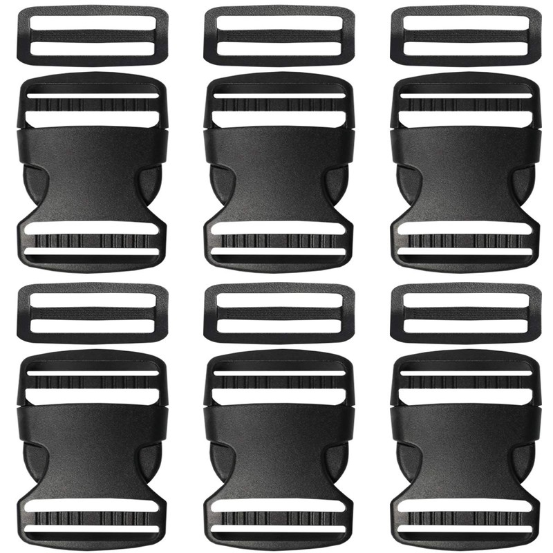 Plastic Buckle 1 1/2 Inch - Double Adjustable Quick Side Release Replacement Clip for Webbing Strap - Black, 6 Sets