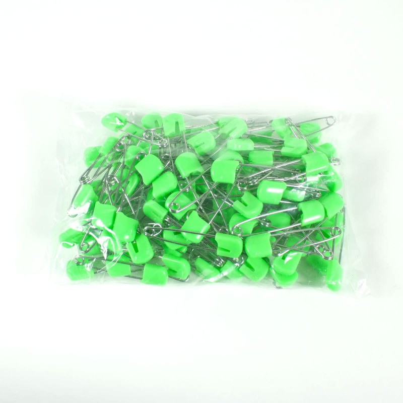OsoCozy Cloth Diaper Nappy Pins 100 Packs - 100 Stainless Steel Safety Pins with Locking Plastic Heads. Durable, Safe and Cute 2.2 Inches Long (Light Green)