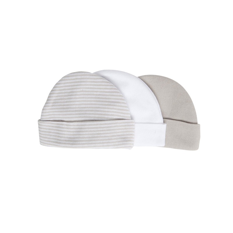 PLAYETTE Preemie Caps, Grey/White, 3 Count