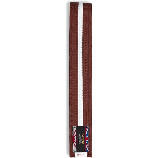 Playwell Martial Arts Cotton Striped Coloured Grading Belt - Brown Belt With White Stripe (220cm)