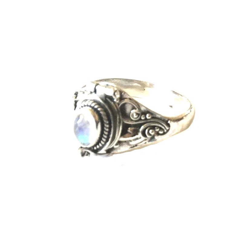 Poison Ring Bali Sterling Silver Locket Ring rainbow Moonstone AR04