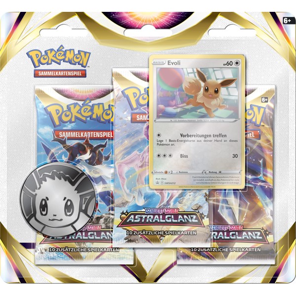 - Contents: 3 booster packs, 1 of 2 promo cards (Eevee or Feelinara), 1 Pokémon coin