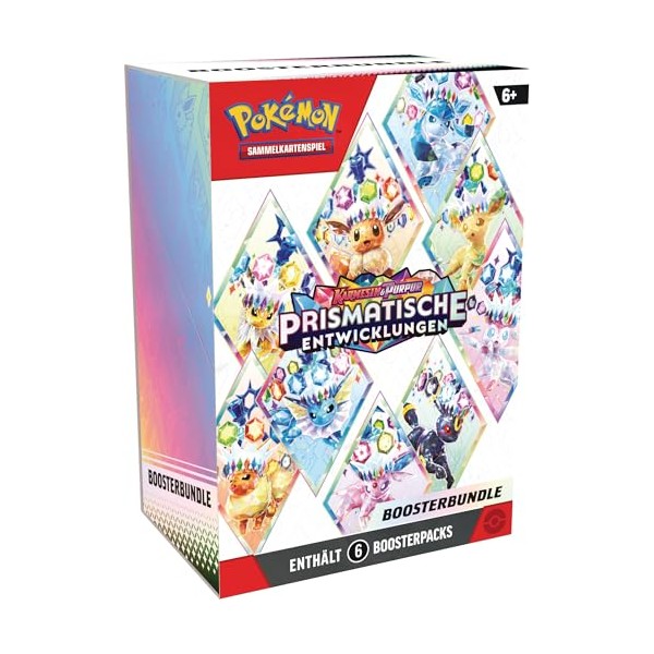 - This booster bundle contains 6 booster packs of the Pokémon TCG expansion Crimson & Purple - Prismatic Developments. Each booster pack contains 10 cards, 1 base energy card and 1 code card for Pokémon trading card game live.