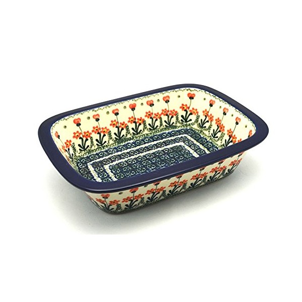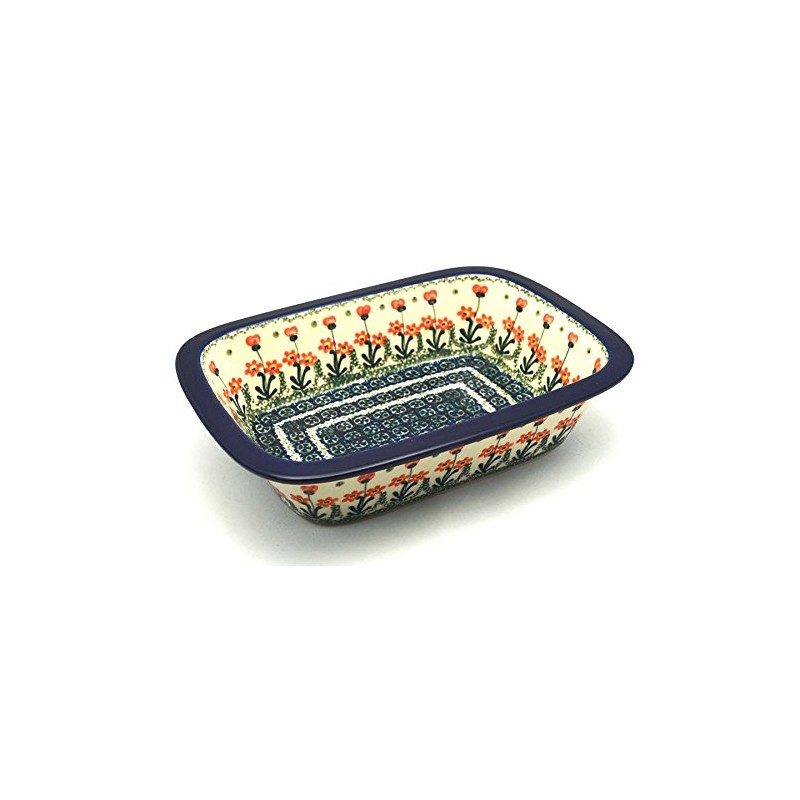 Polish Pottery Baker - Rectangular with Grip Lip - Peach Spring Daisy