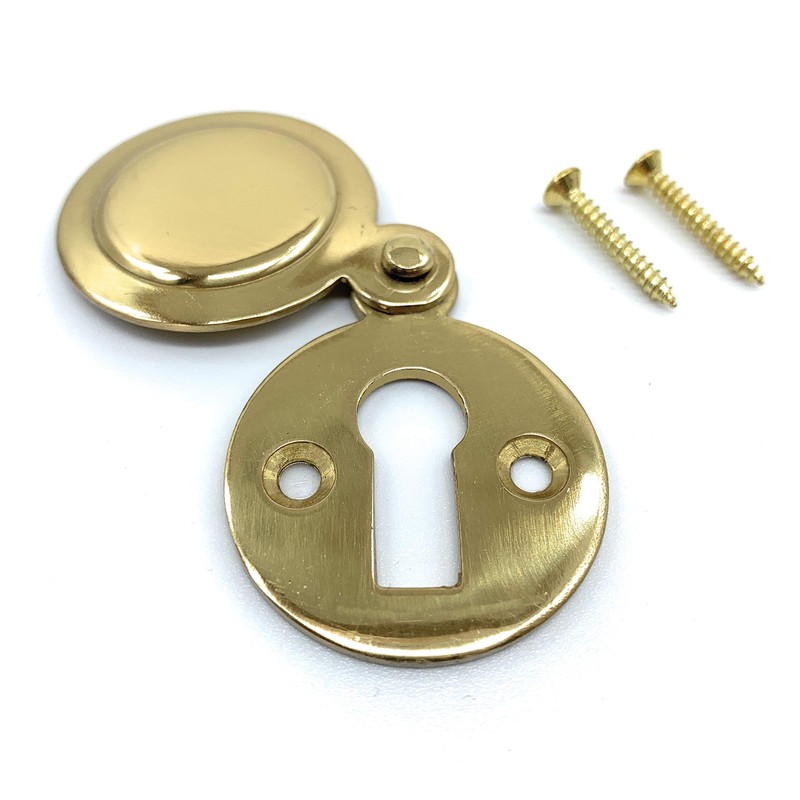 Polished Brass Round Keyhole Cover Escutcheon with Screws