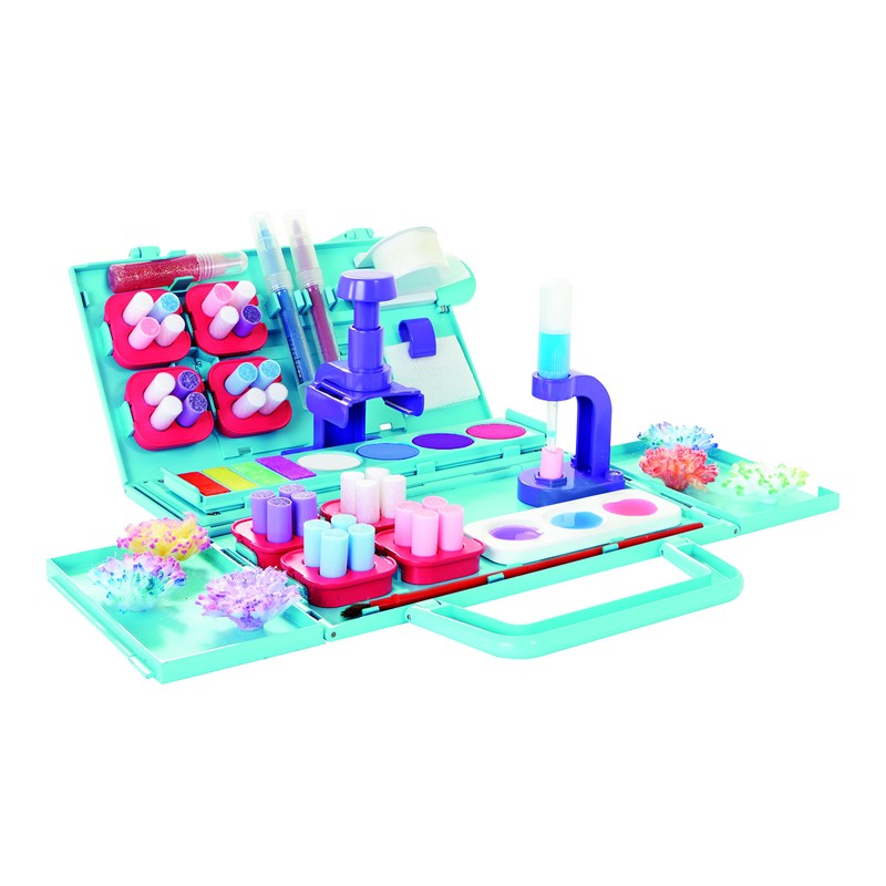 - The Decoration Station comes with 1 portable play set, 75 pom poms in 4 colors, 85 adhesive dots, 8 removable pom pom trays, 1 removable water tray, 1 adhesive roll dispenser, 2 markers, 1 blotting cloth, 1 paintbrush, 1 pipette, 4 stamper pads, 4 watercolors, and 1 glitter gel pen.