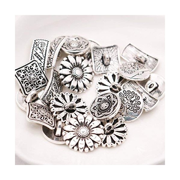 Pomeat 50 PCS Mixed Antique Silver Flower Decorative Metal Buttons for Sewing