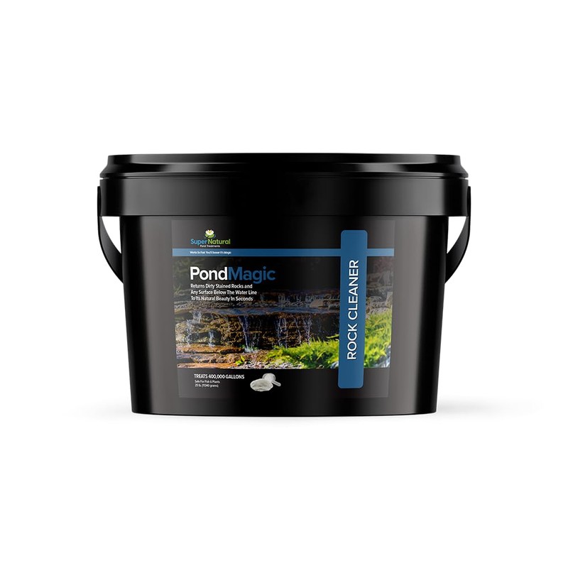 Don’t you wish you could snap your fingers and magically every surface of your pond was like new? Well you are in luck. SuperNatural’s PondMagic will do just that by utilizing ONLY OXYGEN! Just throw it on any surface, rocks, liner, waterfalls, streams or bubblers and watch unsightly debris vanish. Simply turn off your pump, throw on, let sit for a few seconds, watch it bubble and “Poof!” clean surfaces. 1/4 of a cup treats 100 square feet. Use as needed as problems arise or to fight on-going issues within the pond.