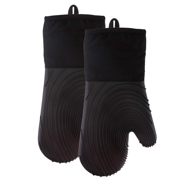 POPULAR BATH 2 Pieces Silicone Twirl Style Oven MITT Set, Black