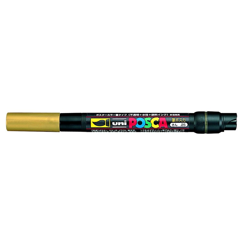 Posca UNI-BALL PCF-350 BRUSH TIP MARKER - GOLD - SINGLE PEN