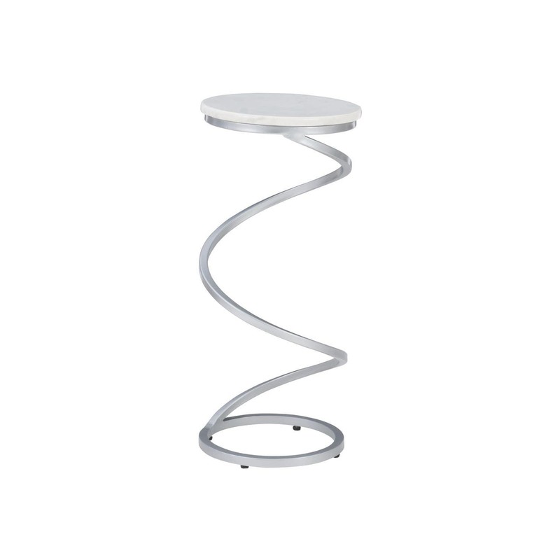 Powell Rian Spiral Drink Table with Silver White Marble D1323A20WSB