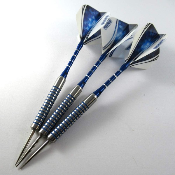 - The darts are attractively finished with contrasting blue rings