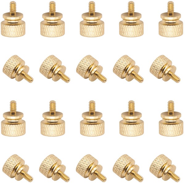 Powlankou 20 Pieces 6#-32 Computer Case Screws, Anodized Aluminum Thumbscrews, Fully Threaded Knurled Thumbscrews, Thumb Screws (Gold)