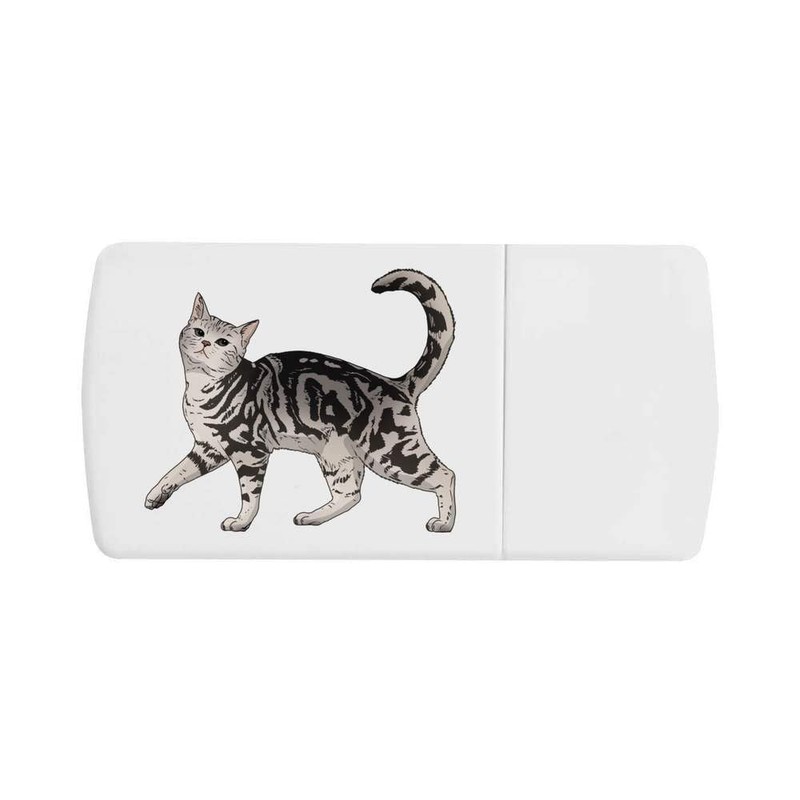 'Prancing Gray Tabby Cat' Pill Box with Tablet Splitter (PI00032001)