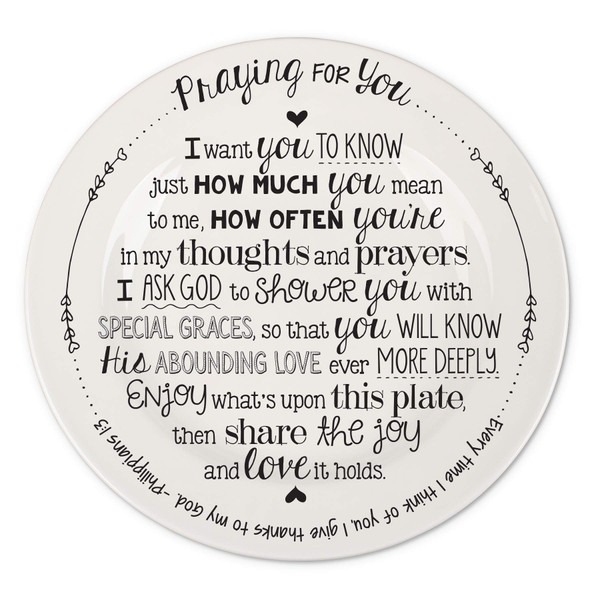 - Features printed sentiment "Praying for you. Every time I think of you, I give thanks to my God. Philippians 1:3. I want you to know just how much you mean to me, how often you're in my thoughts and prayers. I ask God to shower you with special graces, so that you will know his abounding love ever more deeply. Enjoy what's upon this plate, then share the joy and love it hold.