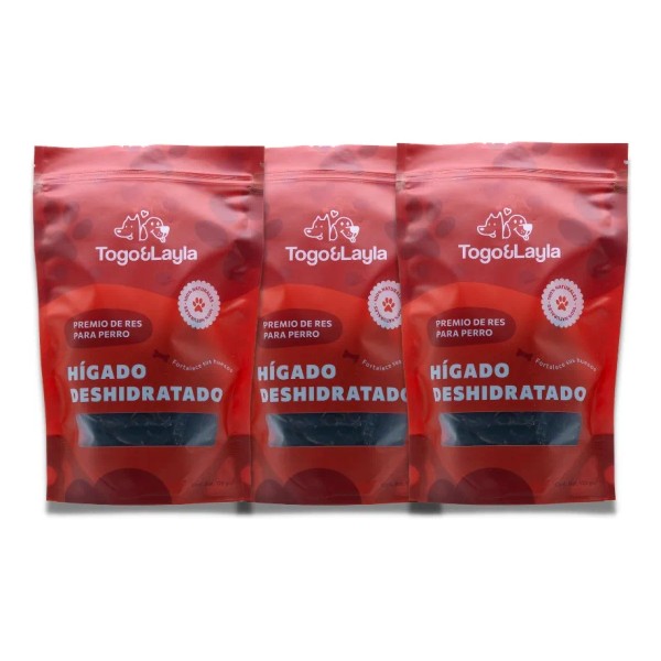 Paquete de 3 bolsas de 120 gramos de nuestro Hígado Deshidratado.
