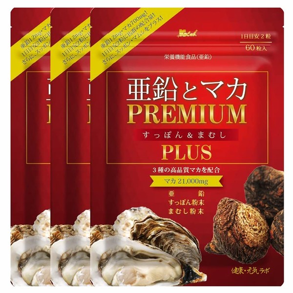 【管理栄養士・サプリメントアドバイザー推薦】 亜鉛とマカ PREMIUM すっぽん&まむし PLUS ~1日2粒目安 60粒/30日分 こだわり厳選の4大元気成分を黄金比率で配合 サプリのプロも~ 健康・元気 ラボ (3袋セット)
