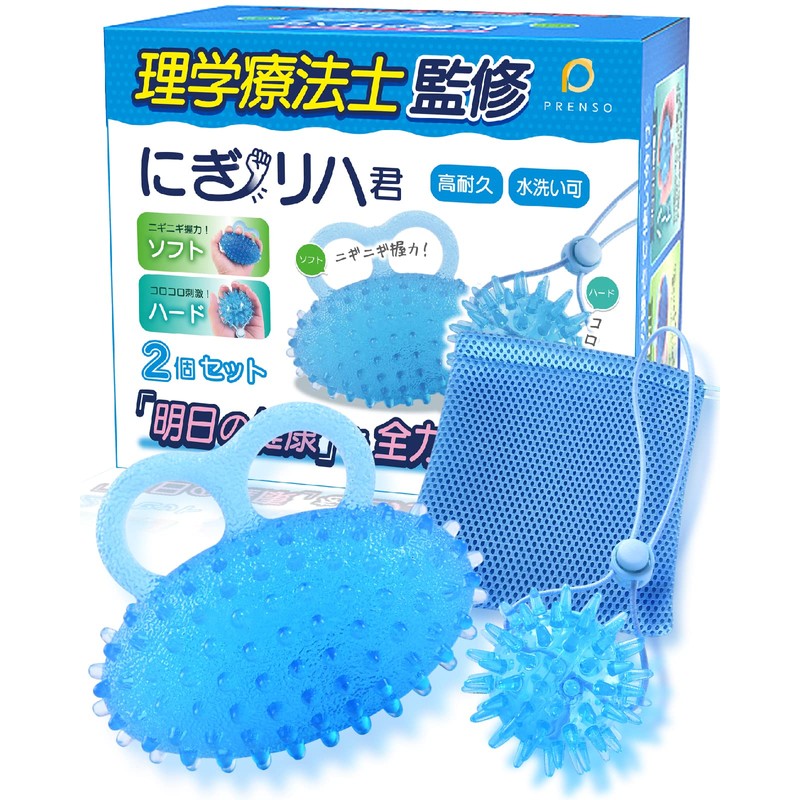 【現役の理学療法士監修】にぎリハ君 新改良デザイン 2個セット(ハード/ソフト)リハビリ ボール 握力 トレーニング 器具 [PRENSO プレンソ] (ハード&ソフト(外袋付き))