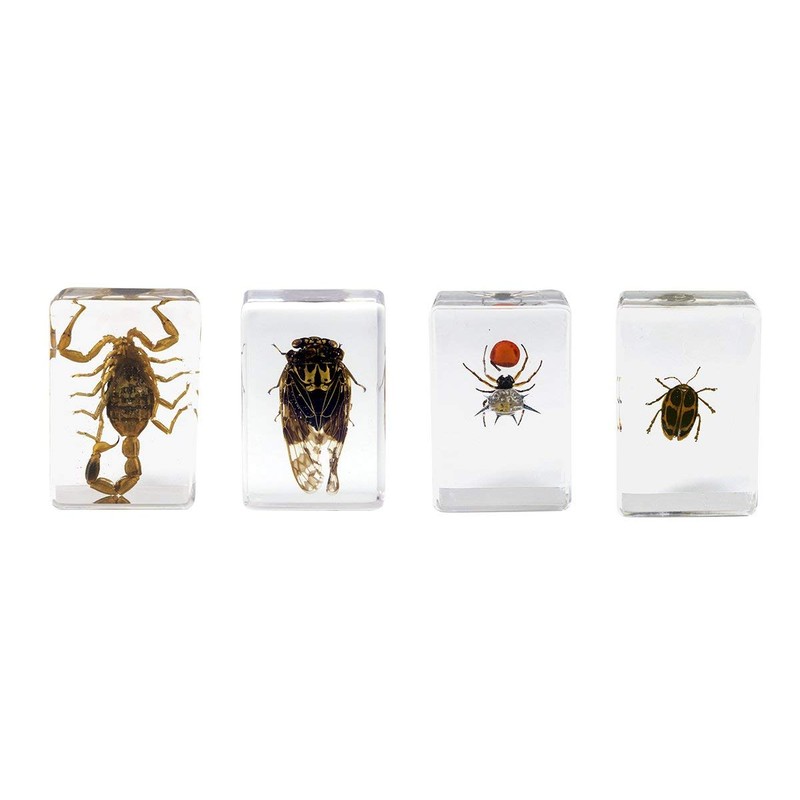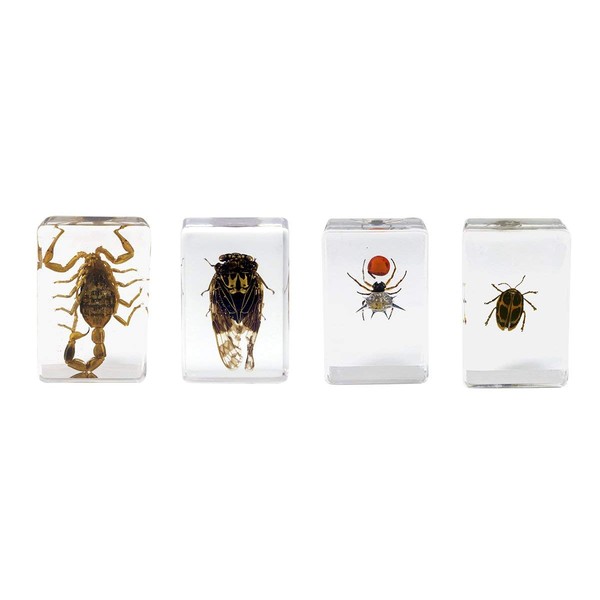 Bug out with this set of 4 real, 3D insect specimens perfectly preserved in resin. These specimens are ideal for observing and imaging with any Celestron digital microscope. Crystal clear resin lets you observe the insects from all angles. Use them for school projects, research, and more. These specimens make the perfect gift for the young scientist in your life. They'll love learning about fascinating insects from around the world and studying their anatomy up close. Your little entomologist can even display the insects in his or her room when not in use. This kit includes: Chinese Scorpion (Buthus martensi Karsch) Golden Cicada (Proretinata vemacula) Spiny Orb-weaver (Gasteracantha sp. ) Golden Spotted Leaf Beetle (Oides duporti Laboissiere)