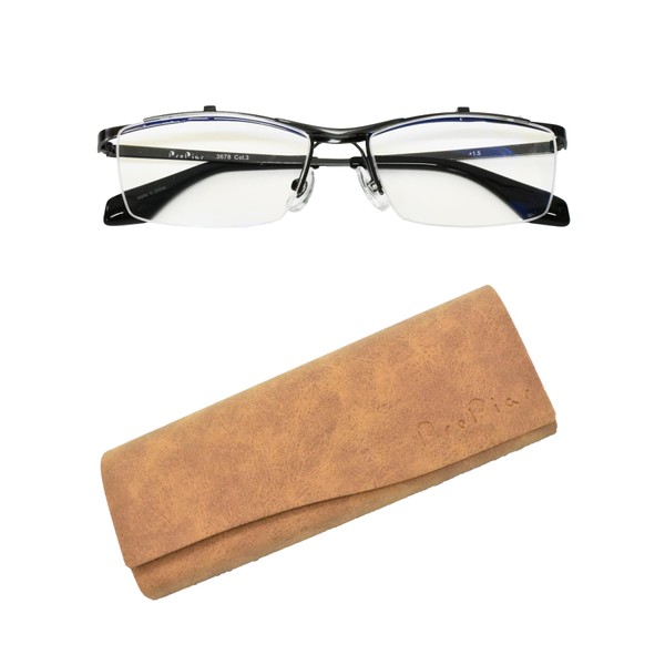 [PrePiar] 跳ね上げ式老眼鏡 老眼鏡 フリップアップ メンズ リーディンググラス 遠近両用 ブルーライトカット 3ヶ月保証 ケース付き +1.5