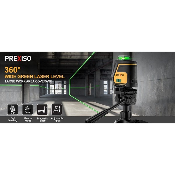 Prexiso 360 Laser Level Tripod-IP54 Rechargeable Wide Angle Vertical Line Laser 100Ft