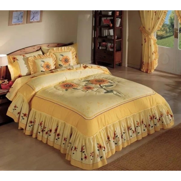 Prima Edrecolcha Girasoles Amarillo Matrimonial Con 2 Cojines