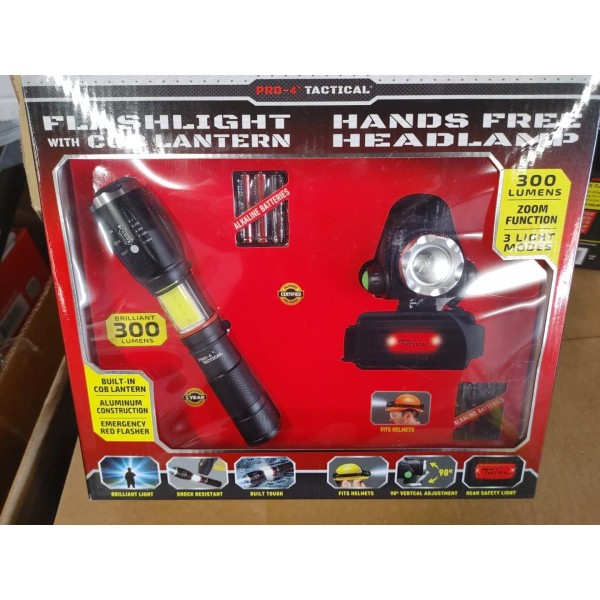PRO4 PRO-4 FLASHLIGHT WITH COB LANTHERN HAND FREE HEADLAMP
