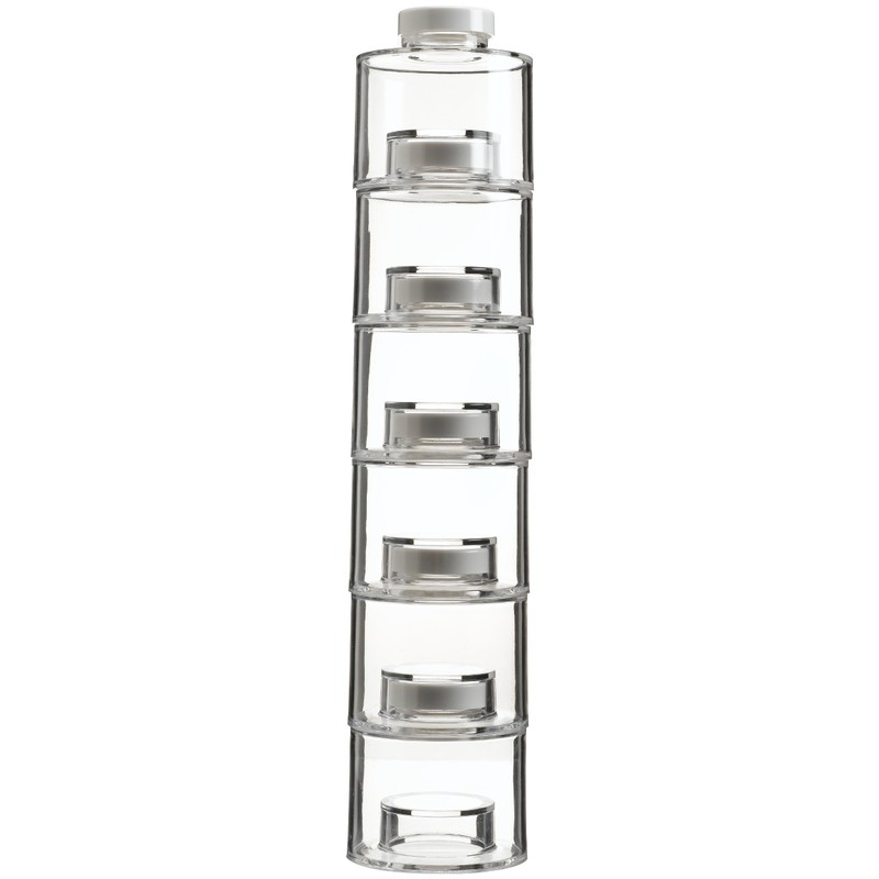- Set stacks to 13.75-inch high overall; each jar is 5 ounces.