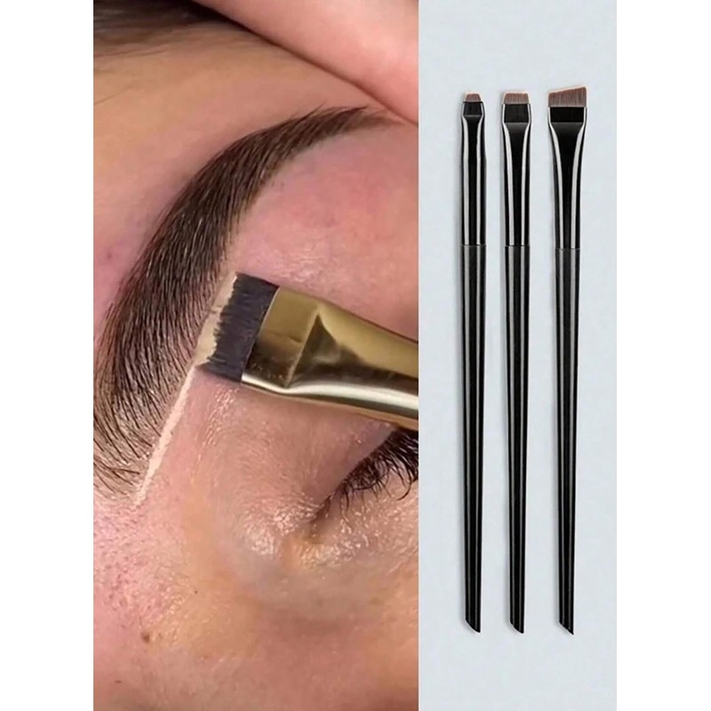 Professional Eyebrow Brush Set, 3 Angled Flat Brushes, Black, Precision Tinting and Makeup Application