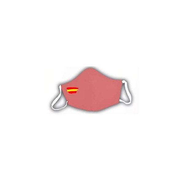 Protective mask with approval pink Spain flag made in Spain. Maximum wearing comfort thanks to ear plugs. Reusable: washable in short programs at 60 degrees. No infection or impairment. This mask has been made using ultrasonic machines to prevent human penetration by acting as a protective barrier. It is officially approved and fulfils the necessary measures to prevent overloads. Labelling data: woven mask with TNT filter. One size fits all. 1 piece per pack. Reusable "This product is not an EPI or a health product". Do not touch the mask too much with your hands. BFF>98Pa/cm2>60 Meets technical specifications: UNA 0065:2020 Reusable to achieve 100% efficiency, maximum 10 washes at 60 degrees.