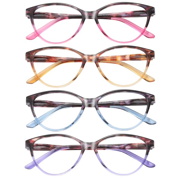 Przene 4 Pack Cat Eye Reading Glasses for Women Blue Light Blocking Readers 1.25