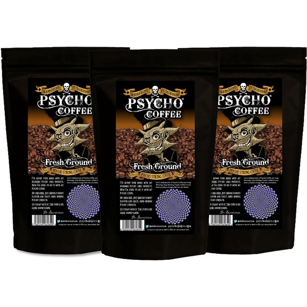 Psycho Coffee - Fresh Ground Psycho Strong Coffee - 3 x 250g Bags