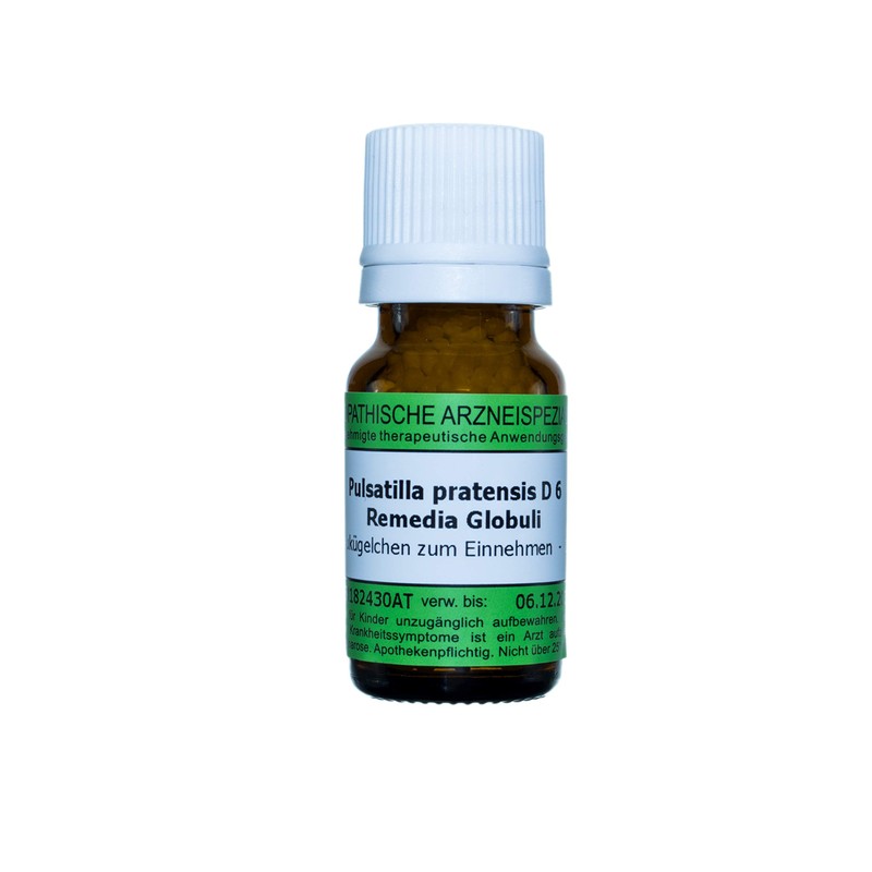 Pulsatilla pratensis D6 (pack size: 10g) is a registered homeopathic medicine and therefore without specifying a therapeutic indication. The Globuli are size 3 sucrose stray balls, which are lactose and gluten free. This medicine is produced and controlled according to Homeopathic and European Pharmacopoeia in Austria in GMP quality by REMEDIA Homeopathie GmbH. In accordance with the principles of homeopathy, each treatment is carried out with a medicine individually adapted to the patient and his respective disease. In addition to effects, drugs can also cause side effects. For risks and side effects, please consult your doctor or pharmacist.