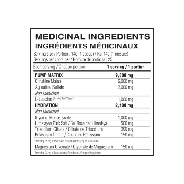 - ℹ️ 25x Servings ℹ️ Allergens ▪️ Vegan friendly ▪️ Gluten-Free ▪️ Peanut-Free ▪️ Lactose-Free ▪️ Soy-Free ▪️ Sugar-Free ℹ️ Non-Medicinals ingredients: Natural & Artificial flavors, sucralose, citric acid, leucine, glycerol monostearate, Himalayan Pink Salt ℹ️ Non-Medicinal Ingredients (Unflavored version): leucine, glycerol monostearate, Himalayan Pink Salt