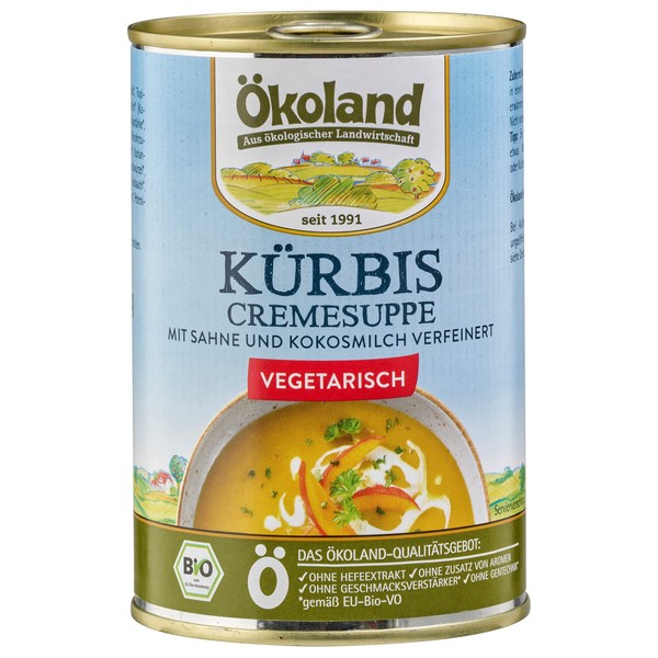 Flavour: storage and usage instructions: tip: prepare the entire package contents and let a non-consumed amount cool if necessary, store in a closed container in the fridge and use quickly. This means that if necessary Avoid uneven distribution of the insert. Processing: Pumpkins are grown in a variety of varieties worldwide and can be used in many ways as food, processed and preserved. Our vegetarian pumpkin soup is classically made with other types of vegetables and rounded off with cream, curry, coconut and ginger and other spices. Processing/preparation: slowly heat the contents of the can in a pot over medium heat. Stir from time to time. Do not boil.Tip: you can refine the soup with some maple syrup, pumpkin seed oil, pumpkin seeds or black caraway seeds. Certification/en * EU organic seal
