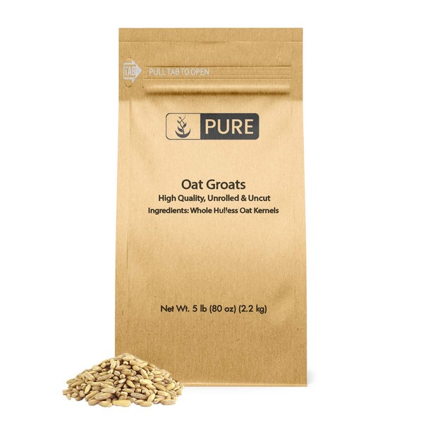 PURE Oat Groats (5 lbs) Whole, Uncut & Hulless, High-in-Protein Oat Kernels (¼ Cup Serving)